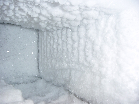 Gebruik zeker geen mes om het ijs weg te steken, want zo loop je het risico om je diepvriezer te beschadigen. Gebruik ook geen warm water, maar zet de deur open, aat het ijs smelten en reinig de binnenkant met een vochtige spons met lauw water. Droog ook zorgvuldig af: zo vermijd je schimmelvorming en een nieuwe ijslaag.
