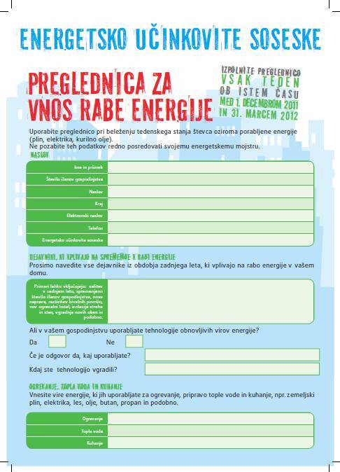 Preglednica za vnos rabe energije