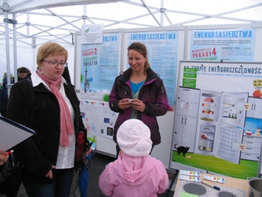 Na stoisku, na specjalnie do tego celu przygotowanej ściance, umieszczone zostały plakaty edukacyjne na temat: etykiet efektywności energetycznej, możliwości oszczędzania światła, trybu czuwania urządzeń domowych oraz sposobów oszczędzania energii w kuchni.